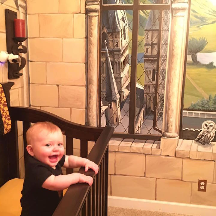 Unlike Harry Potter and Hermione Granger, 7-month-old Finley Daniel doesn't have to wait until he's 11 to go to Hogwarts School of Witchcraft & Wizardry. His parents, Casey and Kaycee Daniel, have just finished a three-month-long makeover of their nursery to look as magical as the set design of the beloved Harry Potter movies. The baby's father, a big fan of the series, approached his wife with the idea for a Harry Potter-themed design when she was first pregnant. “At first, I wasn't sure, to be honest, but after him showing me some ideas, I came around to the idea,” Kaycee tells Buzzfeed.