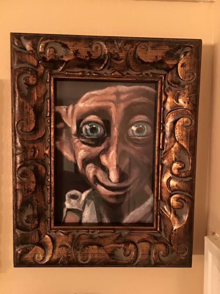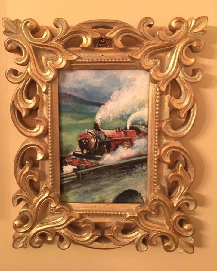 To persuade Kaycee further, a family-friend and 3D artist named Nate Baranowski agreed to paint a wall-sized mural in the nursery. He painted an illusive stone wall with a depiction of a window, which looks out over the castle, past the Whomping Willow, and onto the lake where Harry Potter took Buckbeak the Hippogriff for a joyride. Along with the mural, which took him five days to complete, Baranowski also contributed smaller portraits of Harry Potter characters—Dobby the House Elf and Albus Dumbledore—as well as scenes from the books, that hang on the wall near the baby's changing table.