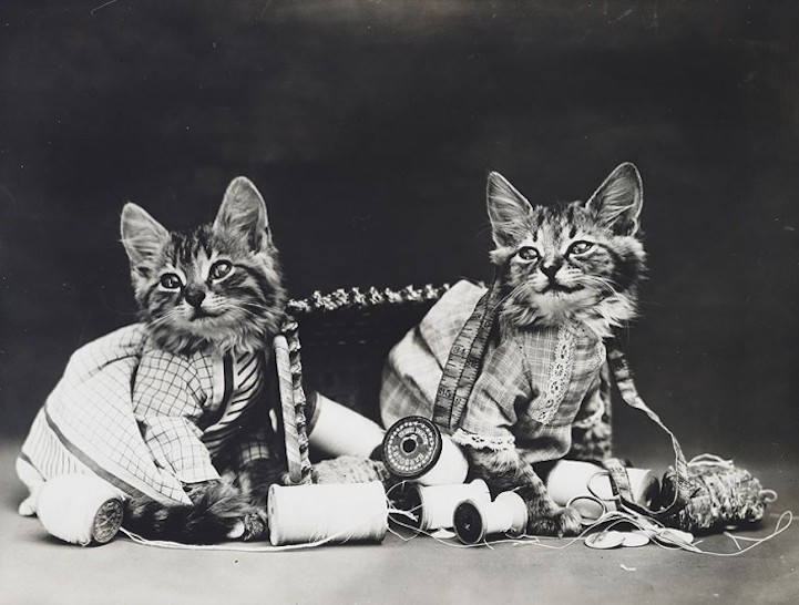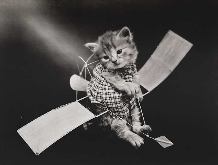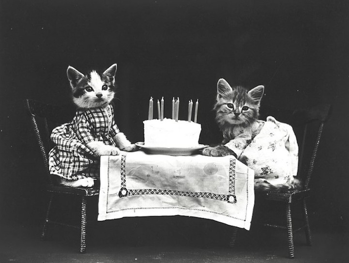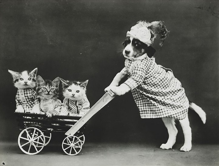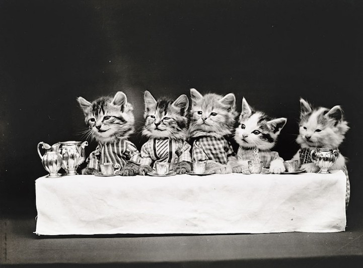 Harry Whittier Frees, an American photographer who lived from 1879 to 1953, may have created the original LOLcat images! His funny photographs show adorable animals dressed up in clothes and posed in human situations. Often accompanied by humorous captions, the photographs depict the furry little critters wearing clothes handmade by Frees' mother and using tiny props that look like they belong in a dollhouse. We're not entirely sure why, but there is just something inexplicably hilarious about seeing cats drinking tea or riding a choo-choo train together.