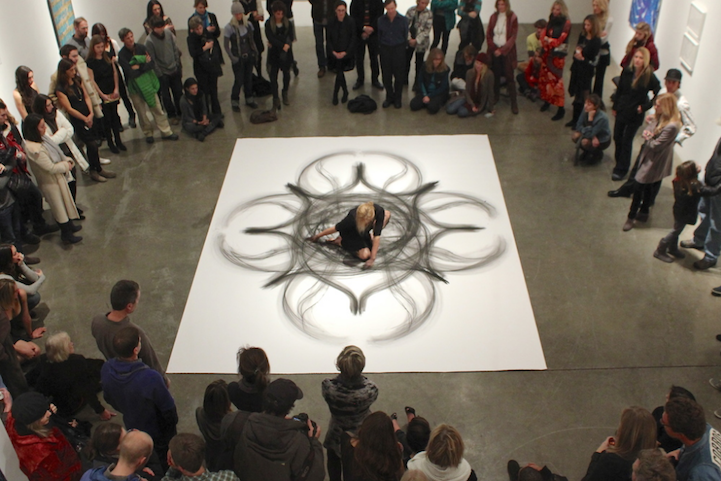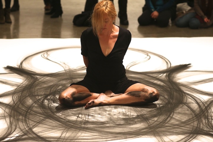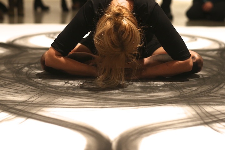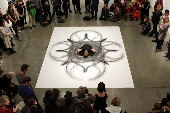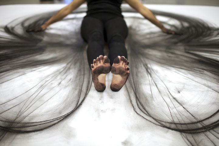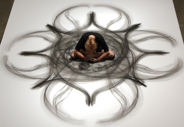 Using just her body and a piece of charcoal, New Orleans-based performance artist Heather Hansen bends and twists in fluid motions across the surface of paper to create beautifully rough symmetrical shapes and patterns. Her captivating performances involve dance-like movements that are just as much the main focus as the final, large-scale drawings.