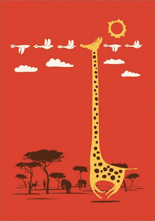 The clean and modern designs merge colorful shapes with bright, solid backgrounds. The simple illustrations are intended to communicate distinctly positive concepts of hope, love, and good humor. The artist says, “I would describe my work as simple and fun, but with a strong idea or message behind it. Life should be fun and humorous when possible and I hope that my illustrations generate a sense of joy and happiness.”