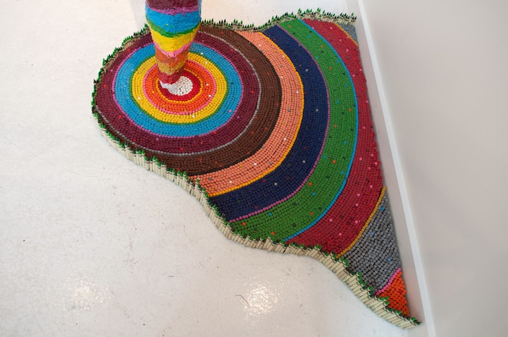 One of the most beautiful pieces, called Seeking Shelter, consists of a simple tree branch with an egg placed on top of it. While from the side, one can appreciate the way Williams twists the crayons, giving the piece dimension and depth, it's the view inside the branch that makes it so stunning.