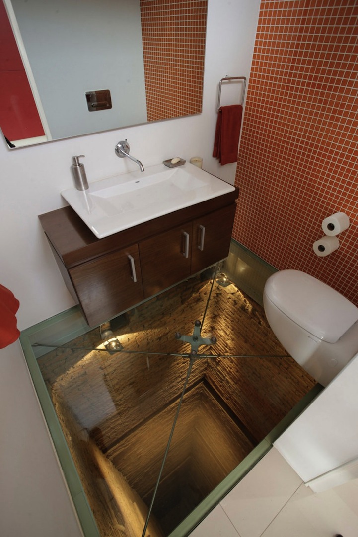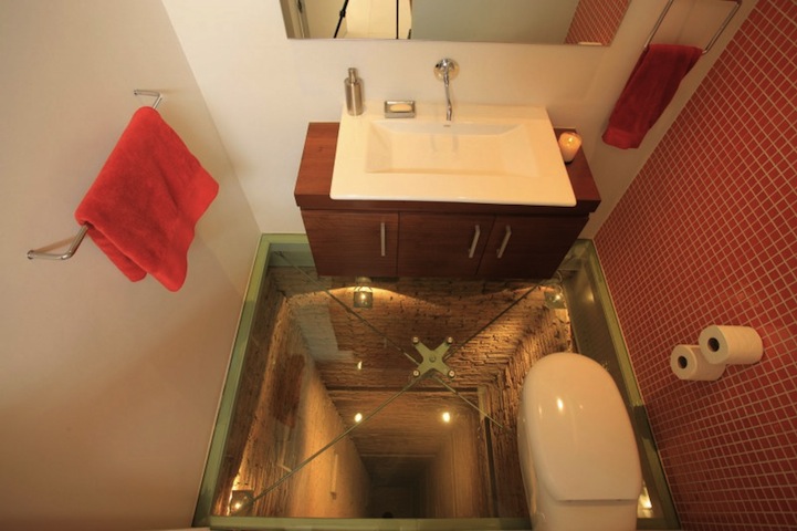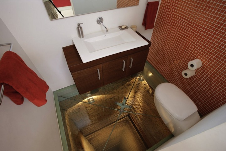 Typically, when people go to the bathroom, they seek a quiet place. Designer Hernandez Silva had other ideas. Located inside a penthouse in Guadalajara, Mexico, the scariest bathroom in the world sits atop a 15 story elevator shaft and features a glass floor to ensure your constant terror!