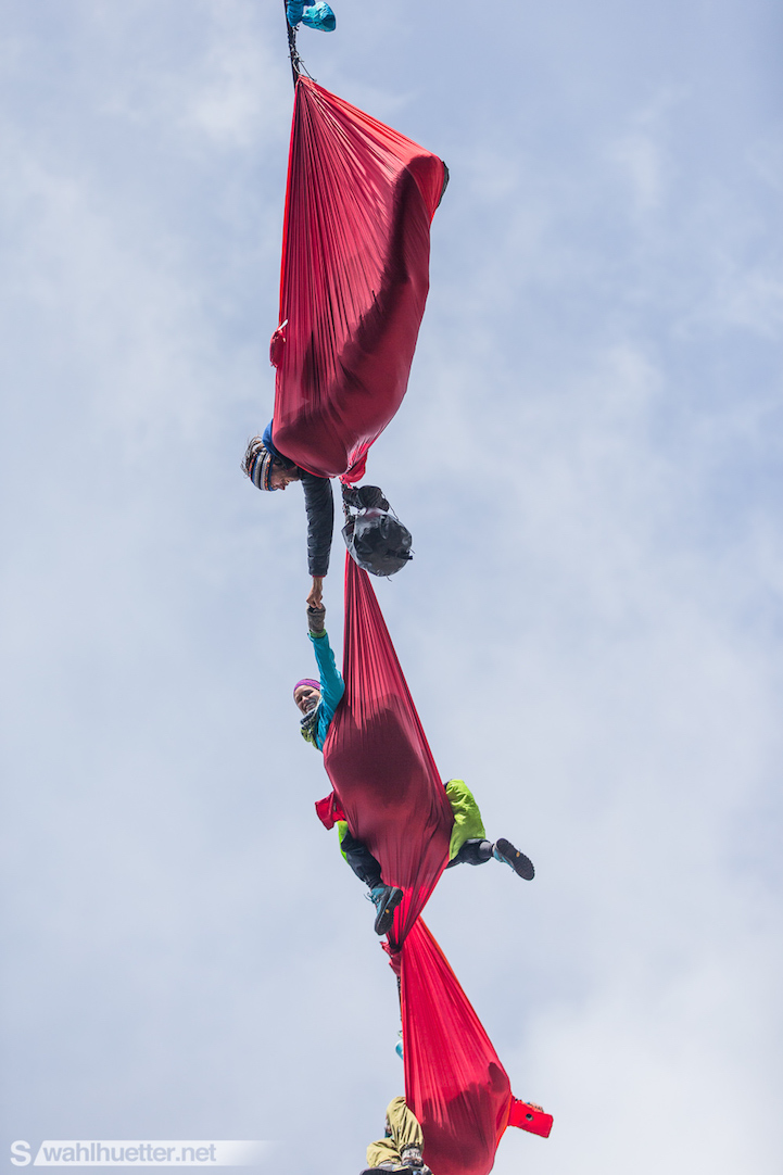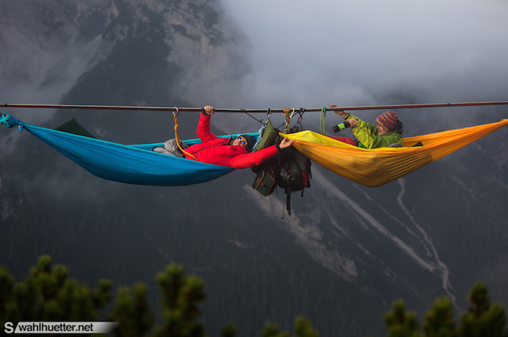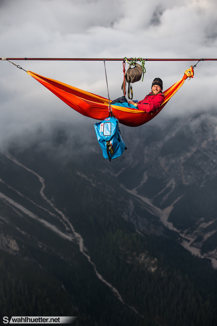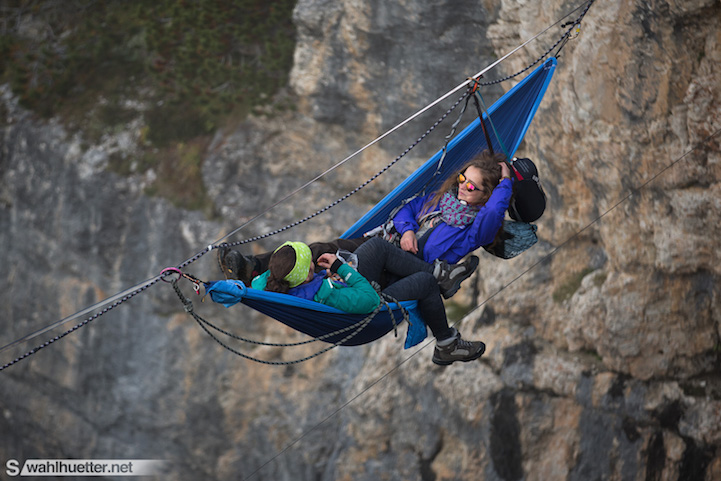 Like last year, Vienna-based photographer Sebastian Wahlhtter was there to photograph the Highline Meeting, which kicked off on September 10 and just wrapped up on September 15. Highlining, he told us, is an “incredible experience.” He shared: “I can remember the first time going to sit on a highline, and it was really an intense experience. Once you are in the hammock, it's perfect, and you get a feeling of freedom; even though it's so exposed, relaxing is not a problem.”
