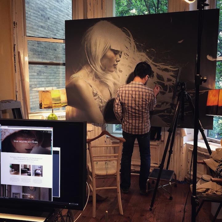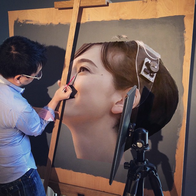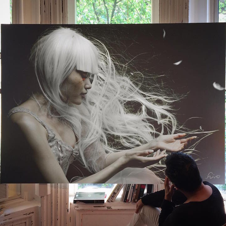 Artist Hirothropologie has devoted himself to creating photorealistic paintings that are spectacularly detailed. Every freckle is emphasized along with each strand of hair. As for the clothing that he portrays, all embellishments are intricately represented and help to add a sense of texture. “I put my entire life in it,” the painter admits. Using a set of precise tools, the artist meticulously creates brushstrokes that are indistinguishable and colors that are true to life. It's this commitment that makes the creative's portraits as lifelike as they are. Overall, Hirothropologie's subjects look as though they're about to step out of his large-scale canvases and become a part of the real world.