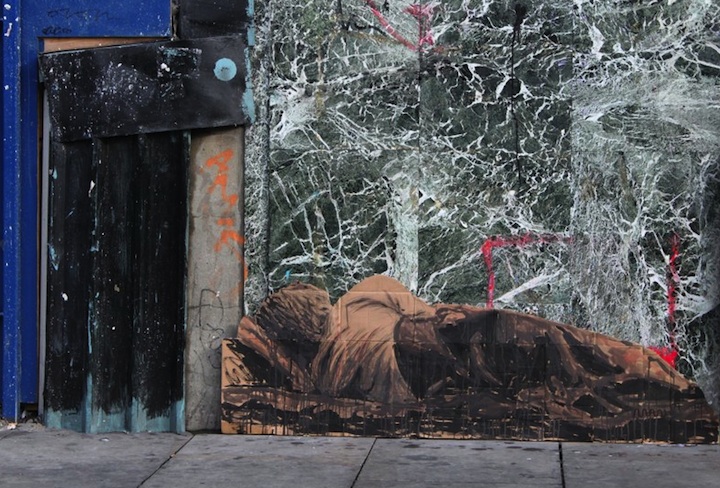 Street artist Michael Aaron Williams purposely puts up his homeless street people in places where others will find them. He doesn't glue them up, rather, he simply tapes them to the walls so that anyone who passes by might want to stop, take them off the wall, and bring them home. And if no one does? “They will cease to exist,” Williams says. “They will be destroyed and blown away in the wind or other forces that will rip them down and throw them away.”