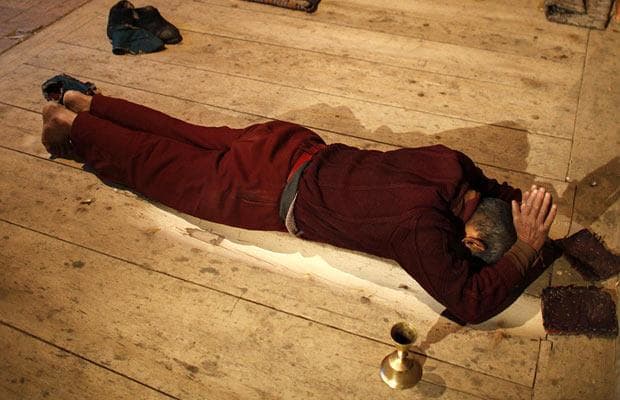 For over 20 years, a Buddhist monk named Hua Chi has been praying in the same spot at his temple in Tongren, China—and it shows. After two decades and up to 3,000 prayers per day, his footprints are ingrained in the wood floor, highlighting his incredible devotion to his spiritual practice.