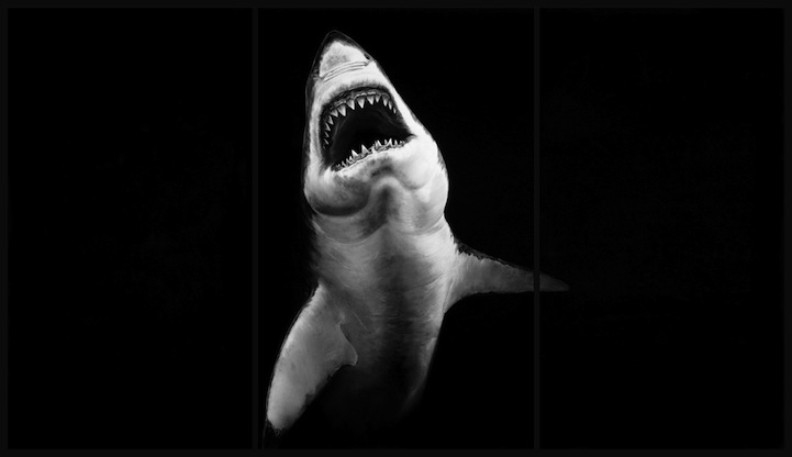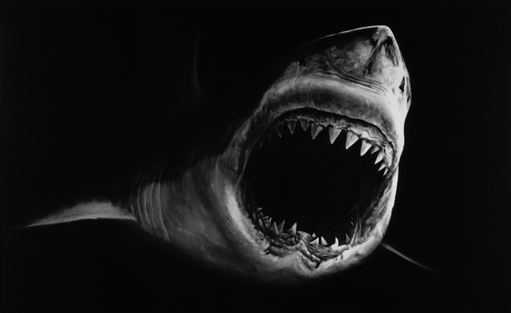 Robert Longo's charcoal drawings are so realistic that, if you have a fear of sharks, these might just give you nightmares. The New York-based artist depicts the menacing beasts with their mouths wide open and razor-sharp teeth pointing straight at us. You can really feel the immense power and threatening nature of the sharks, in this series he calls Perfect Gods.