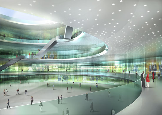 No, these buildings are not happy to see you. MVDRV architects recently won the Gwanggyo City Centre Competition with their design of this incredible new city just south of Seoul, South Korea. The proposed complex is a fully self-sufficient city for up to 77,000 inhabitants. Similar nodes, common in South Korea, concentrate residences, work and play all in one interactive center, reducing dependency on auto or train travel and building a strong sense of community. MVRDV's masterplan provides space for housing, offices, shops, and educational facilities. Designed as a cluster of structures rising up in concentric rings, each floor in the city is lined with lush box hedges that improve ventilation while reducing energy and water usage. An internal irrigation system stores extra water from the buildings and uses it to sustain these green facades. MVRDV states: “This diverse program has different needs for phasing, positioning and size. To facilitate this all elements are designed as rings. By pushing these rings outwards, every part of the program receives a terrace for outdoor life.” The concept is currently being reviewed for development and feasibility at Gyeonggi provincial authority's Urban Innovation Corporation. Development is to be completed in 2011 and construction will start shortly after.