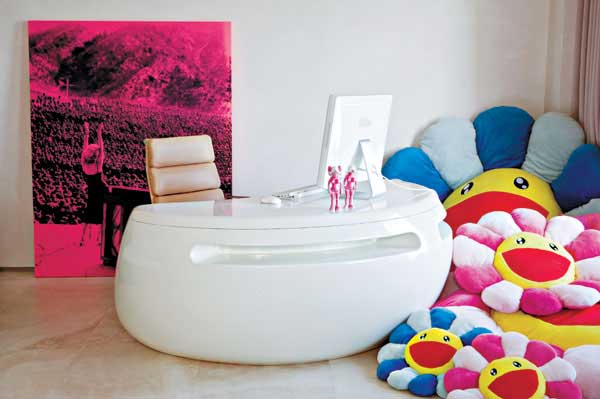 I'll say it. The man is a pain in the ass but he sure has a great sense of style. If there is one artist who's as much entrepreneur and designer as he is singer and songwriter it has got to be Kanye West. Take one look at his 4,200-square-foot, three-level Los Angeles house and you'll have to agree that Kanye's taste – contemporary glam with a pop twist – is not only original but fresh and inspiring.