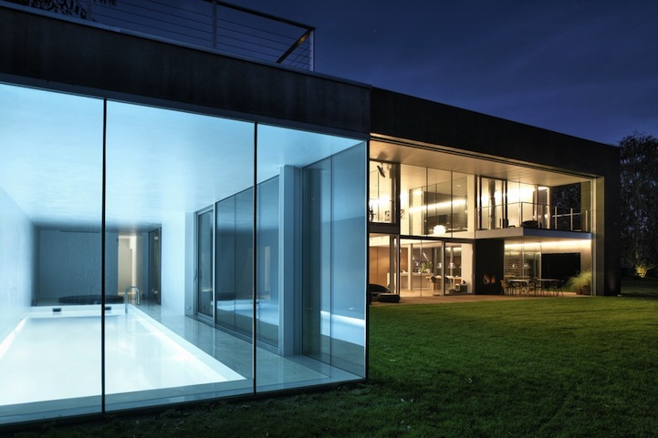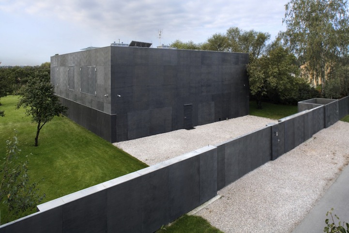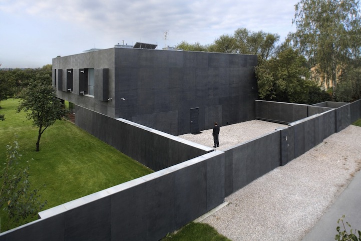 Located in Warsaw, Poland, the 6,100 sq. ft. home features movable concrete walls that can literally be opened or closed according to the needs of its residents. In order to enter, security codes are required. Once those are entered, guests are led into the “safety zone,” an area bordered with concrete walls, before finally being let inside the house.