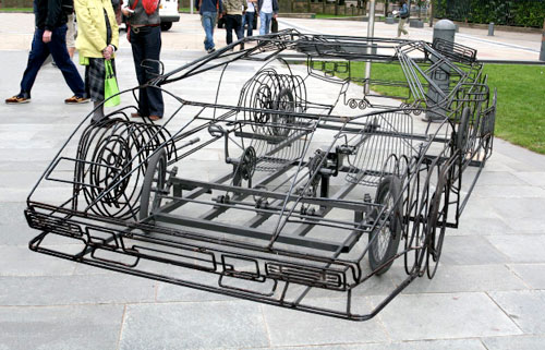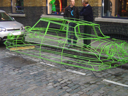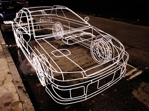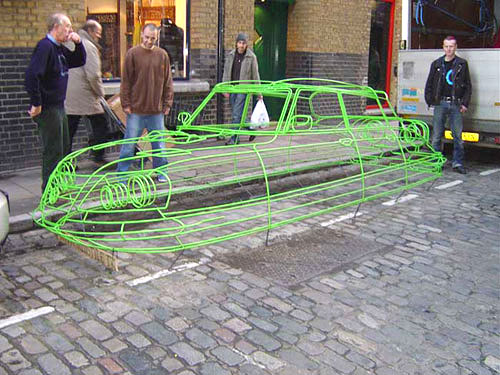 These three-dimensional wire car sculptures by Uk-based artist Benedict Radcliffe are beyond incredible. The cars almost look as though they've been computer generated, but in actuality they are full scale representations made from 10mm steel tubes welded together.