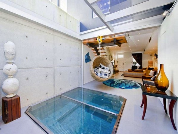 How nice would it be to come home to this? We've all seen the Manhattan townhouse with the indoor pool and now we present an Australian apartment with an indoor jacuzzi! This funky apartment was designed by the creative minds at West Phillips Architects. With the simple use of a winch attached to the ceiling, the user easily pulls the glass cover off the jacuzzi to enjoy a relaxing dip. When finished, he or she simply places the cover back over to reveal a very interesting floor piece. This luxurious addition adds a very youthful feel to the apartment and makes for an awesome party hangout.