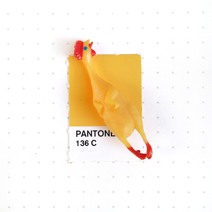 In Tiny PMS Match, Mathew explores the world to find tiny objects that will perfectly blend with specific Pantone swatches. She is always on the lookout for anything that will match the very specific and established color system. Upon discovery of anything from a tiny toy to a broken eggshell, she pairs the swatch with the object and photographs it. The ongoing series is a playful way to connect Pantone colors with our surroundings and Mathew describes it as “a personal project of tiny proportion.”