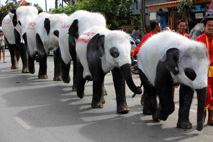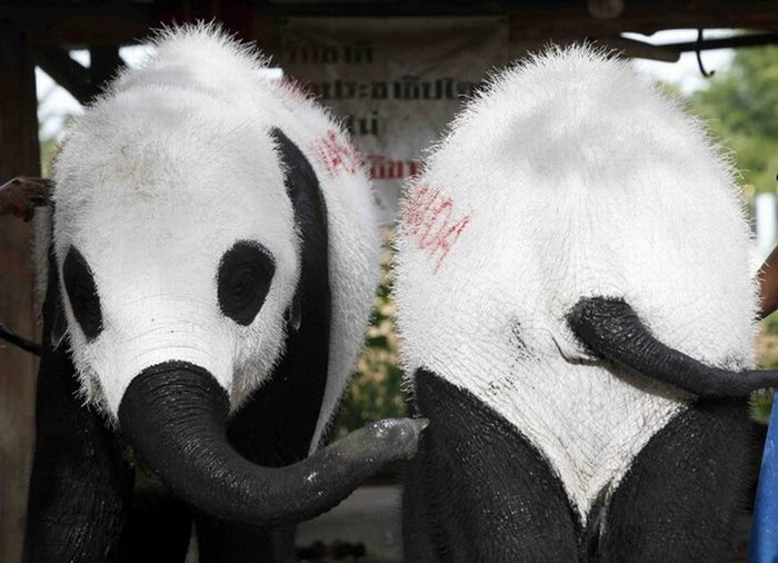 After the birth of one cute little panda bear last month, Thailand's national symbol – the elephant, wasn't getting much love. Determined to steal some attention back, keepers at the Ayutthaya-Elephant Kraal decided to take drastic action, painting five of their neglected giants in watercolor paint, then parading them before schoolchildren.