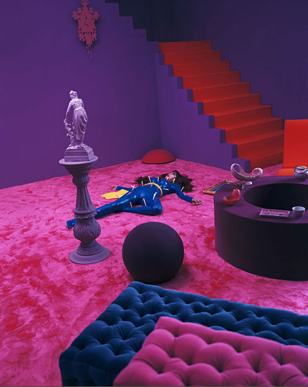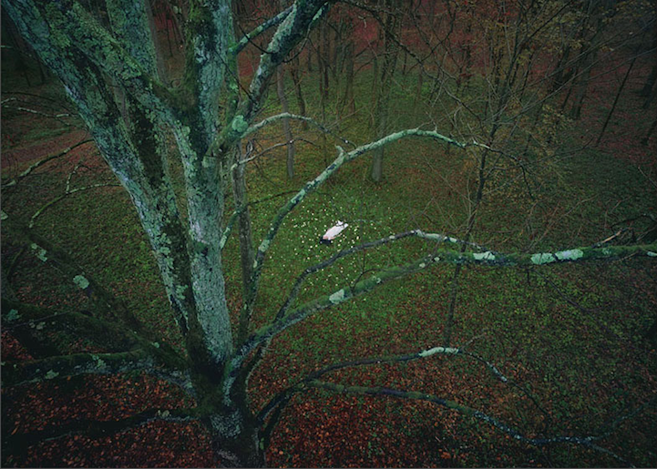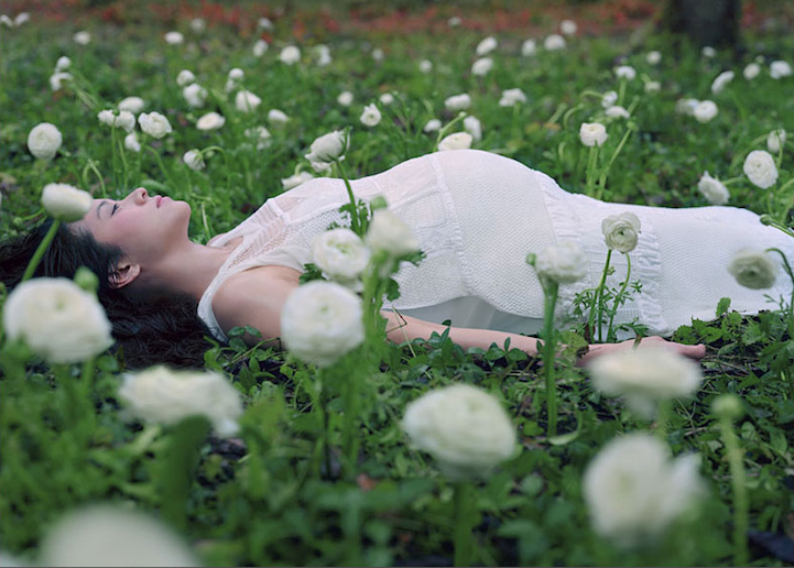 Landscape with a Corpse is a series of images in which Japanese photographer Izima Kaoru merges violence with delicate, feminine beauty. For each spectacle, Kaoru asks his model to reveal their fantasy about a perfect death. He then asks them which designer clothing they imagine wearing when people discover their dead body. Using that information, Kaoru combines the gorgeously styled female models with a morbid final end. However, according to his bio, the images “do not allude to something fatal and irreversible but a kind of elegant and highly aesthetic ceremony.”