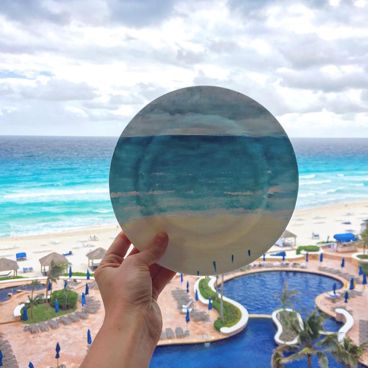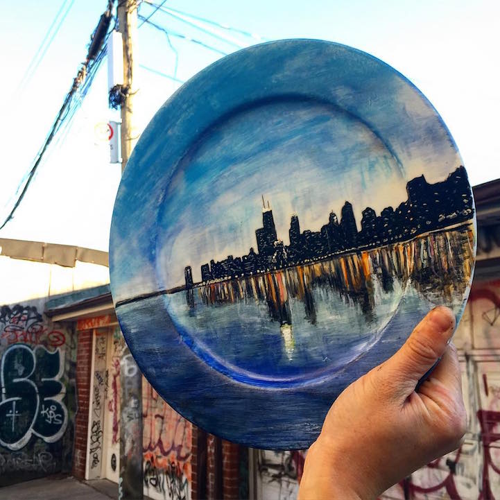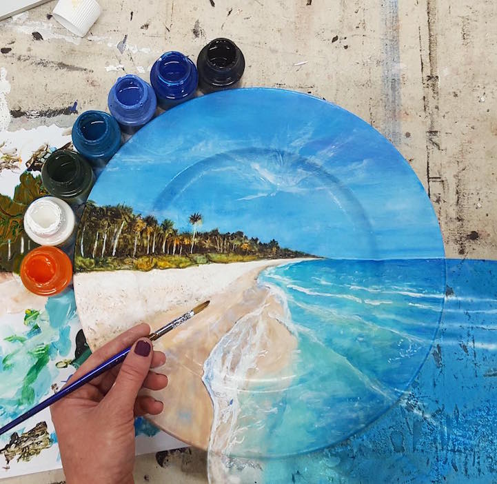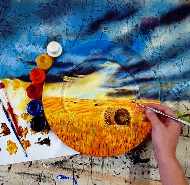 Thus far, we've been delighted by both Poirier's landscapes and her lifelike food paintings. To see what she comes up with next for her plate canvases, you can follow the artist on Instagram.