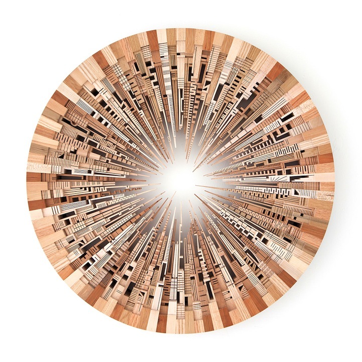 Philadelphia-based artist and craftsman James McNabb recently opened a new solo exhibition, called Metros, that expands upon his ongoing collection of stunning wooden cityscapes. The work is currently on display at the Robert Fontaine Gallery in Miami and “explores sociological concepts regarding transformations of cities and urban landscapes, their beauty, uniqueness, and overdevelopment.”