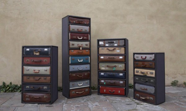 With a one-of-a-kind look to each piece, the suitcase drawers have a classic yet contemporary appeal. Each suitcase of varying widths and sizes fits neatly into its customized metallic or wooden framework, giving it a tidy look with the sense of a nomadic lifestyle. The owner of these Suitcase Stacks or Suitcase Chests would be making a statement about their taste for vintage style and thirst for adventure.