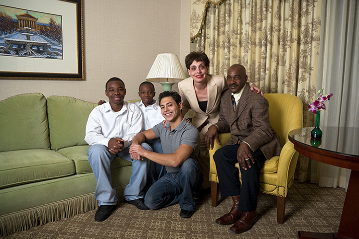 Interested in this dynamic, New York-based photographer Jamie Diamond created a collection of what appear to be conventional family portraits. Without knowing any better, viewers will quickly jump to the conclusion that the images feature a group of loved ones. However, in reality, the people are strangers, awkwardly performing for the camera. To create the series, entitled Constructed Family Portraits, Diamond finds individuals in public or via Craigslist and then asks everyone to meet her in a rented hotel room where she assembles a fictional family.