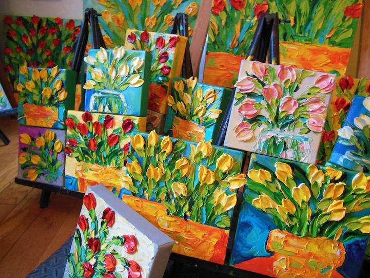 While your typical flower paintings often incorporate touches of softness and delicacy, Ironside's works instead focus on vibrancy and texture. This makes each of her pieces one-of-a-kind, especially when you consider the amount of detail that goes into each and every petal. To see the painter's work for yourself, you can visit her flower-filled Etsy shop.