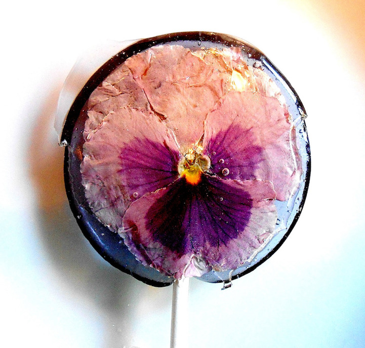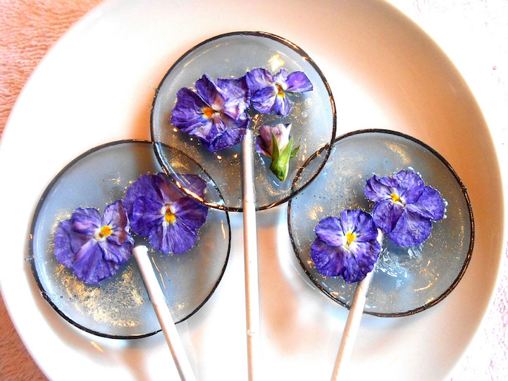 Janet Best (of Sugar Bakers Bakery) has perfected the uncommon art of flower lollipops. Using high-quality ingredients and edible flowers, Best jokes, “It looks as though I'll be growing lollipops this year!” She boasts a playful aesthetic by incorporating these natural ingredients into her treats, which include delicate flowers grown indoors (to avoid insecticides and toxins). Though the flower petals are edible, the lollipops also incorporate other flavorings–watermelon, cotton candy, key lime pie, blueberry, and many more. The flowers are simply used to add an element of uniqueness to each of Best's sugary creations.