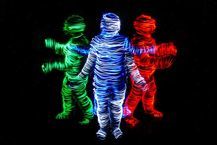 Some artists paint with a brush on canvas, but artist Janne Parviainen is a little bit different. To create his magical portraits, the Helsinki-based artist chooses to paint with light without using any digital post-processing. He sets up very long camera exposures and develops his drawings by moving different lights in specific patterns within the camera frame. As a result of his movements, spirals of light form mysterious figures that emerge out of the darkness.