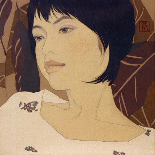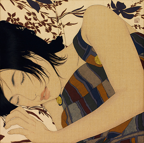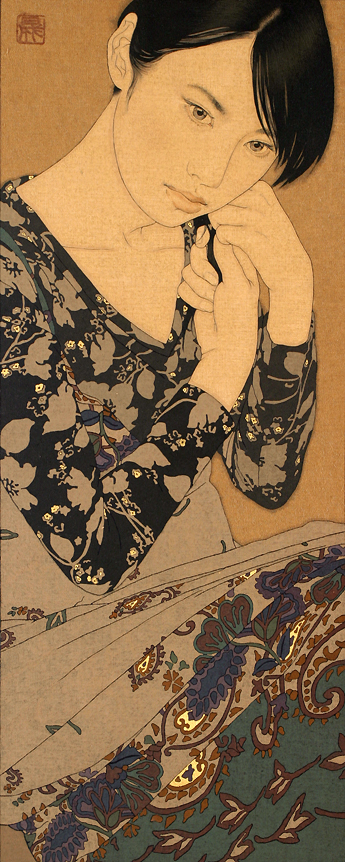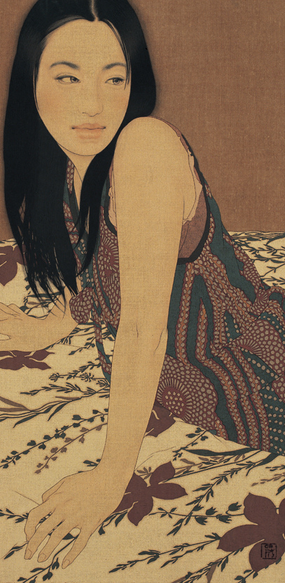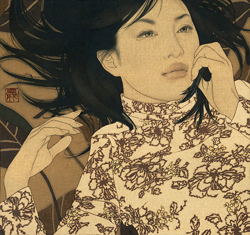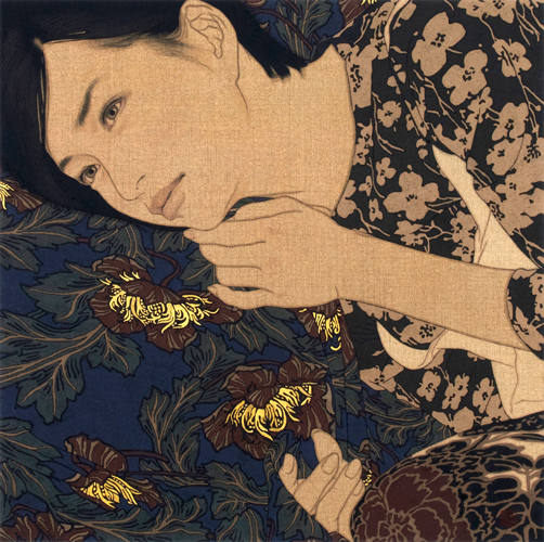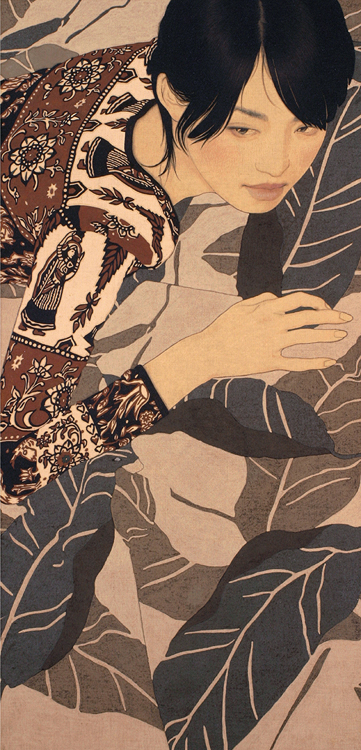 If a good painting is judged by its combination of elegance and beauty, Ikenaga Yasunari's art would receive high marks. His lovely paintings draw the viewer in as they try and decipher what his subjects are feeling. The soft patterns and lines are created using Japanese paint applied to linen canvas with a Menso brush. How subtly beautiful.