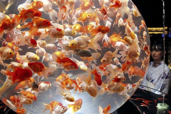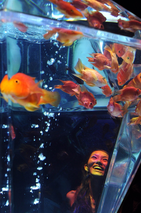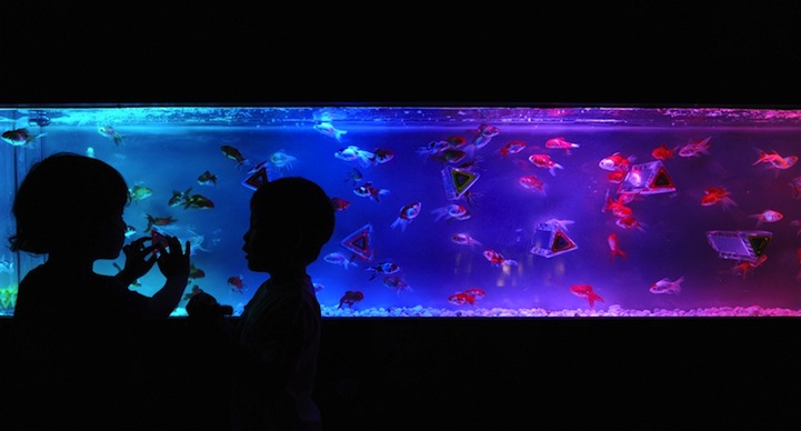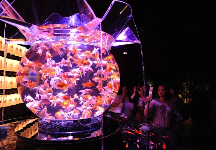 Art Aquarium took place in Tokyo, Japan to showcase uniquely wild aquariums. They are so colorful and unique that the fish become a part of the whole art experience!