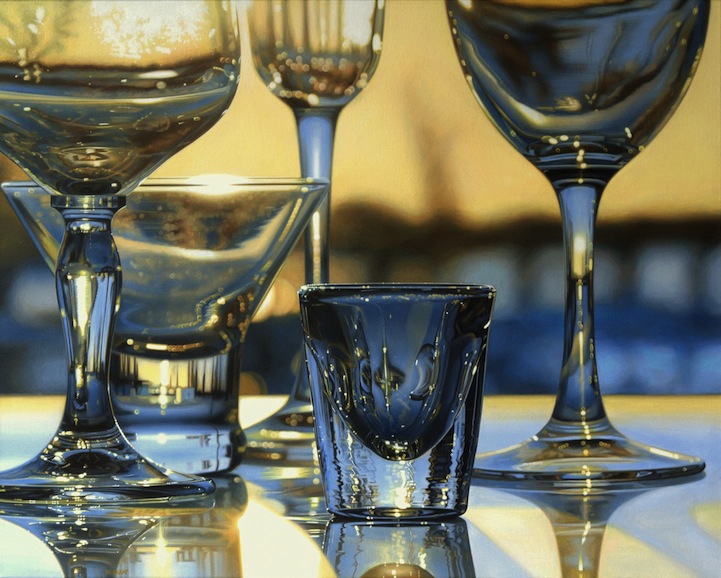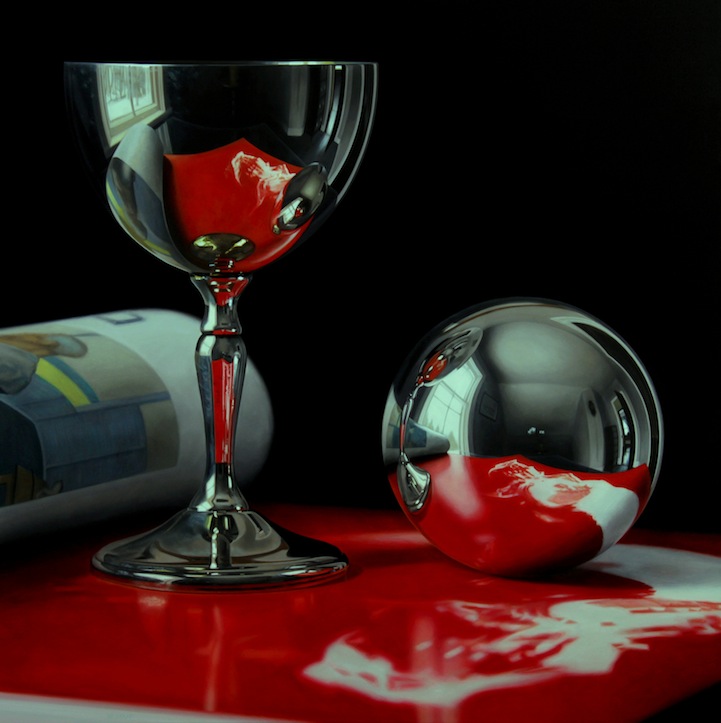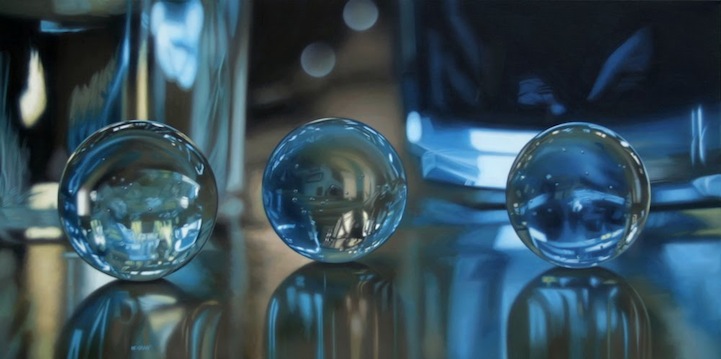 At first glance, these beautiful still life images seem like photographs. In reality, they are actually hyperrealistic paintings by artist Jason de Graaf. The artist focuses on every extreme detail to create realistic depth in layers of crisp reflections. With a steady hand and a strong vision, he produces a new reality based on his own imagination. One reviewer states, “[De Graaf] stretches depth and skews perspective ever so slightly, infusing the painting with a spectre of mystery that pushes the viewer to search for an ever-escaping point of equilibrium.”