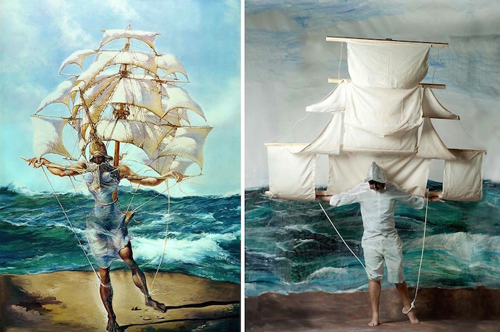 This book features a side-by-side look at submissions from the contest, and they offer an incredible range of photographic interpretations. Some artists reenact the scenes flawlessly, while others present a looser comparison, opting to capture the essence of the piece rather than an exact depiction. Whatever the style may be, the photos are a clever way to remember and reinvent art history. Remake: Master Works of Art Reimagined is currently available through the Colossal Shop.