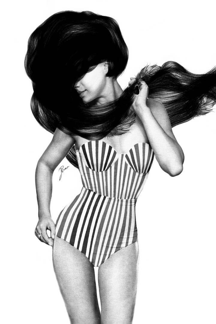 Canada-based illustrator Jenny Liz Rome combines what seems like average fashion images with unexpected animal details. The artist produces elements like soft peacock feathers, fish bowls, and roaring lion faces that naturally emerge from flowing hair and patterned clothing and blend with female figures. As feathers float away and lions bare their teeth, viewers are invited to appreciate the energetic and elegant harmony between nature and fashion.