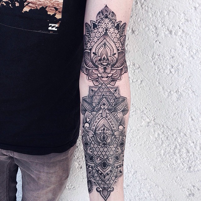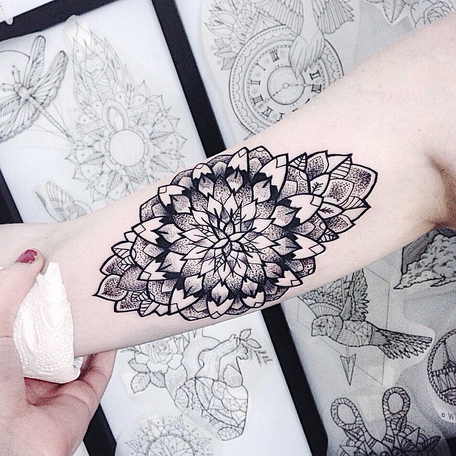 Tattoo artist Jessica Kinzer has a gift for producing powerful tattoos. Though only tattooing since 2014, this young artist shows genuine talent within designs that are both captivating and elegant. The complexity within each tattoo reveals Kinzer's meticulous eye for detail as she utilizes a variety of themes–though many of her pieces are reminiscent of mandala designs, with flourishes and details that diverge from a central point. These highly symbolic themes coupled with Kinzer's noteworthy skills produce works that are eye-catching in their intricacy.