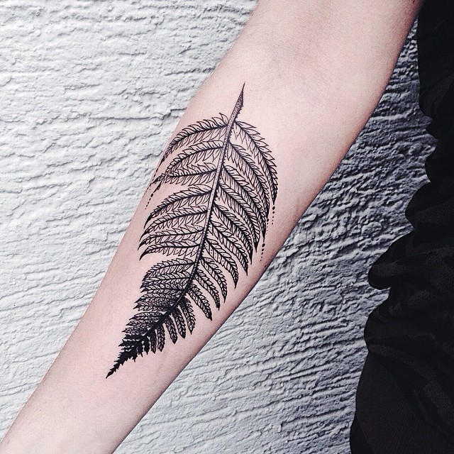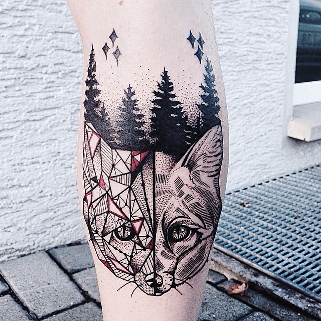 Her works all have a recognizable flecked detailing, comprised of thousands of small dots. Dotwork tattoos are one of the most intricate styles, and the shading created by thousands of pricks to the skin results in an almost 3D final product. Though a painstaking process, Kinzer's detailed designs and diligent execution offer gorgeous results.