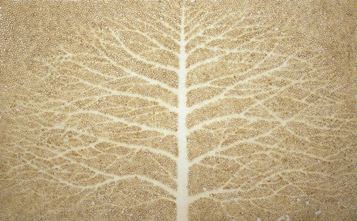 While most artists use traditional materials like pen, paper and paint, Korean artist Jihyun Park uses something altogether different, incense sticks. Rather than adding, he takes away. You see, Park burns thousands of tiny holes into rice paper until he makes recognizable images of clouds, mountains and trees. Called Incense Series, the final drawings are mounted on varnished canvases.The holes in the paper allow one's eyes to see shadows while the white canvases reflect back light.