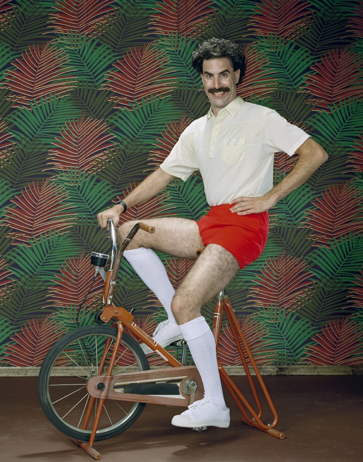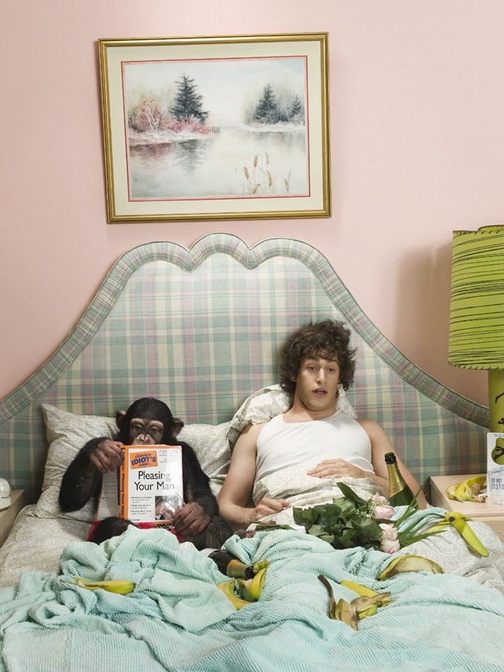Like in a typical photo shoot, most of the celebrities are dressed to impress, but it's the tiny quirks that project their particular sense of humor. While Amy Poehler is donning a pretty pink dress with some refined jewelry, she has clearly been eating with her hands, leaving a mess of barbeque sauce on her fingers. She looks great and yet there is something relatable in her appearance with the inclusion of the sauce, poking fun at the balance of “celebrity” and “comedy” for women. Other comedic actors like John Krasinski and Sacha Baron Cohen reflect less layered though equally effective renditions of their humor. Each represents an element of a character they're famous for – “Jim” face and an unusual Borat working out, respectively.