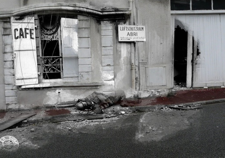 Throughout the past few years, Teeuwisse has continued to combine the past and the present, and recently, she put out more haunting photos that show soldiers at war in France. Disturbing as some of them might be, like the one above titled Left Behind, the images are meant to give us a deeper understanding of our history, particularly of WWII. As Teeuwisse once told us, “I knew what happened there, but knowing the exact spot of some detail will etch it into your visual memory.”