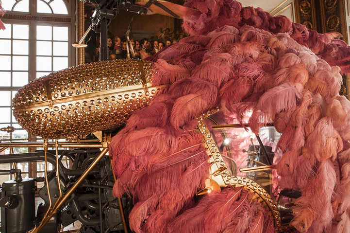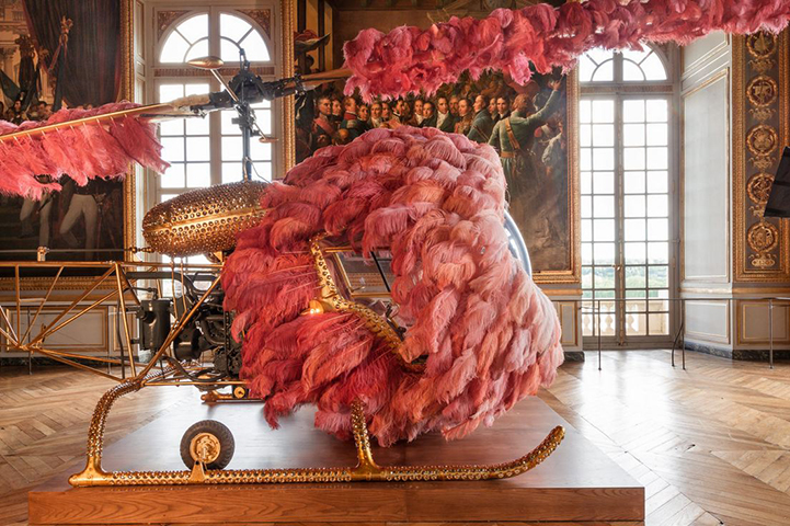 According to the artist statement, the piece “draws on the rich, glamorous and bold aesthetics of the royalty of the late Ancien Rgime in order to suggest a metamorphosis from machine to animal; a return to the origin and to the inspiration that motivated the realization of man's dream of flying.” The modern installation, a part of the artist's 2012 solo exhibition at the Palace of Versaille, sat in strong juxtaposition against the ornately decorated, 17th century room. Regardless of the time period, anyone finding themselves a passenger in this fancy aircraft would surely get a kick out of riding in such ultimate and over-the-top style.