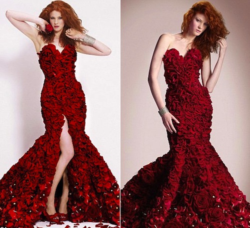 A dozen red roses is a traditional way to say “I Love You” on Valentine's Day. This year, 23-year-old Joseph Massie used not one, but 1,725 red roses to create this stunning floral gown! He collaborated with supermarket chain Asda in their 2012 Valentine's Day campaign, which reminded people to spread the love this year through flowers. When approached by Asda, Massie took on the challenge saying, “I wanted to embody everything a romantic bouquet of Valentine's Day flowers should be–classic, elegant and with a sexy twist.”