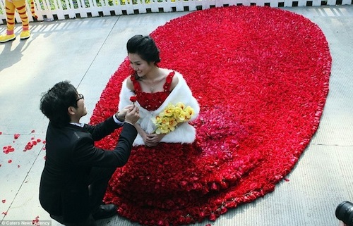 And if you think 1,725 isn't enough, check out the last photo. A man commissioned a dress for his fianc to be made out of 9,999 roses. Why that number? Well in Chinese, pronunciation of the number “nine” sounds similar to the word “forever” so the couple considers the dress to be a symbol of their commitment to each other.