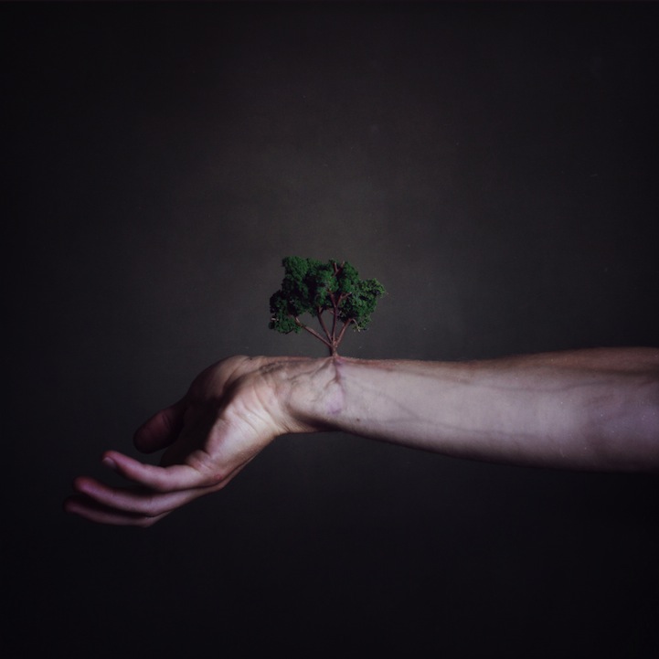 Within the plentiful collection, Robinson has a selection of shots that reveal a darker and somewhat more romantic side to his aesthetic while retaining his signature essence of magic and surrealism. Hands and arms reach into the frame and emerge from the ground with some form of plant or flower extending from the isolated limb's veins. Through these manipulated displays, the photographer creates a visual connection between the human form and nature, intriguing our senses.