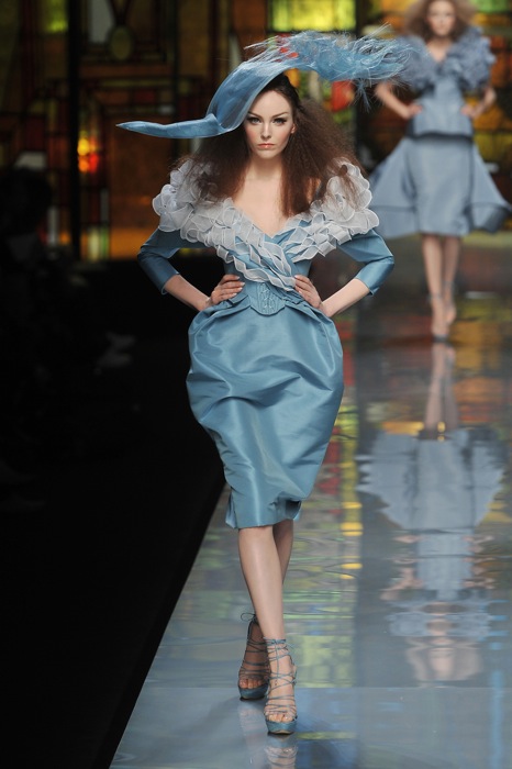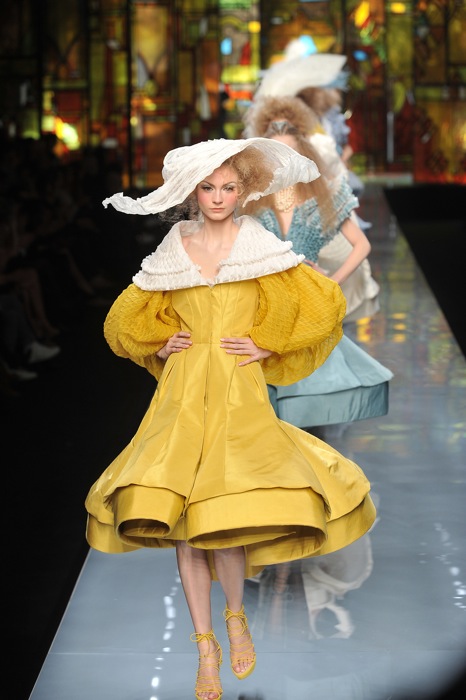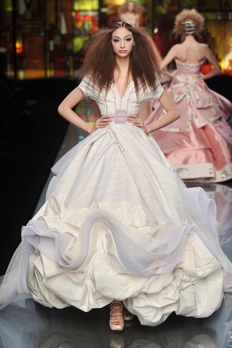 Oh flight of fancy! John Galliano took the fashion world by storm by showing us his outstanding (though outlandish) point of view through Christian Dior's 2009 Spring Couture Collection at Haute Couture Fashion Week. We expected nothing less from this outrageous designer who blew us away with billowing layers of silk taffeta, high and low hemlines, Chinese porcelain doll inspired dresses and his endless array of sherbert colored creations! With clinched in waists and billowing skirts, Galliano reminded us about just how fun and fabulous fashion can be. Rock on with your bad self, Galliano!
