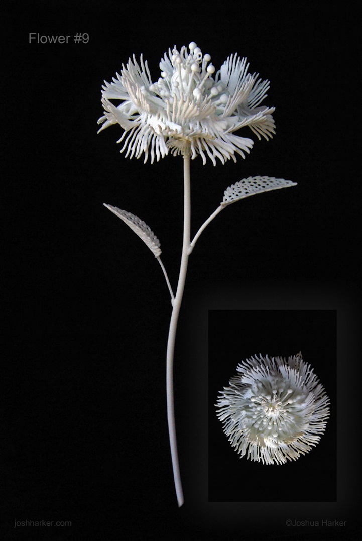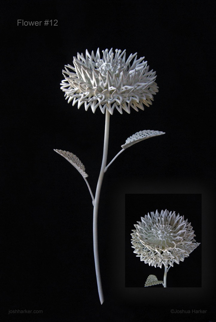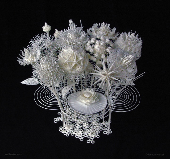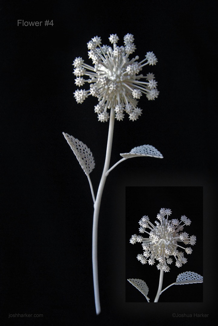 Harker has put his own funding into his development of the next generation of 3D printing, but has recently launched a Kickstarter campaign to help him complete his research. In exchange for financial support, the artist is offering this stunning series of 3D printed filigree flowers, entitled Mazzo di Fiori.