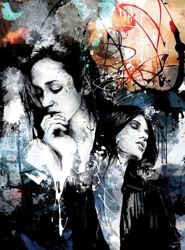 These illustrations by Australian portrait artist Joshua Miels feature complex and colorful compositions that are created from layer upon layer of a variety of media. Not limiting himself to one form of artistic creation, Miels prefers to combine classic painting styles, felt tip pen line illustrations, and modern digital technology to form these fantastic pieces bursting with energy.