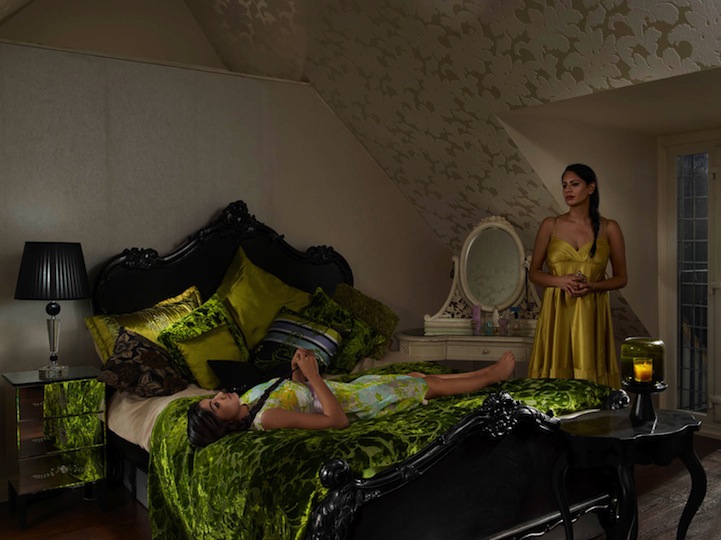 Choosing to use real mother-daughter pairs in their own environments instead of models posing as kin in an unfamiliar setting, the photographer says, “I only needed to orchestrate the sitters moderately to show the essence of their emotional bond. They created their own small world together, at the same time, through the staging of the scene, reviving my memories of my own family's relationships.”