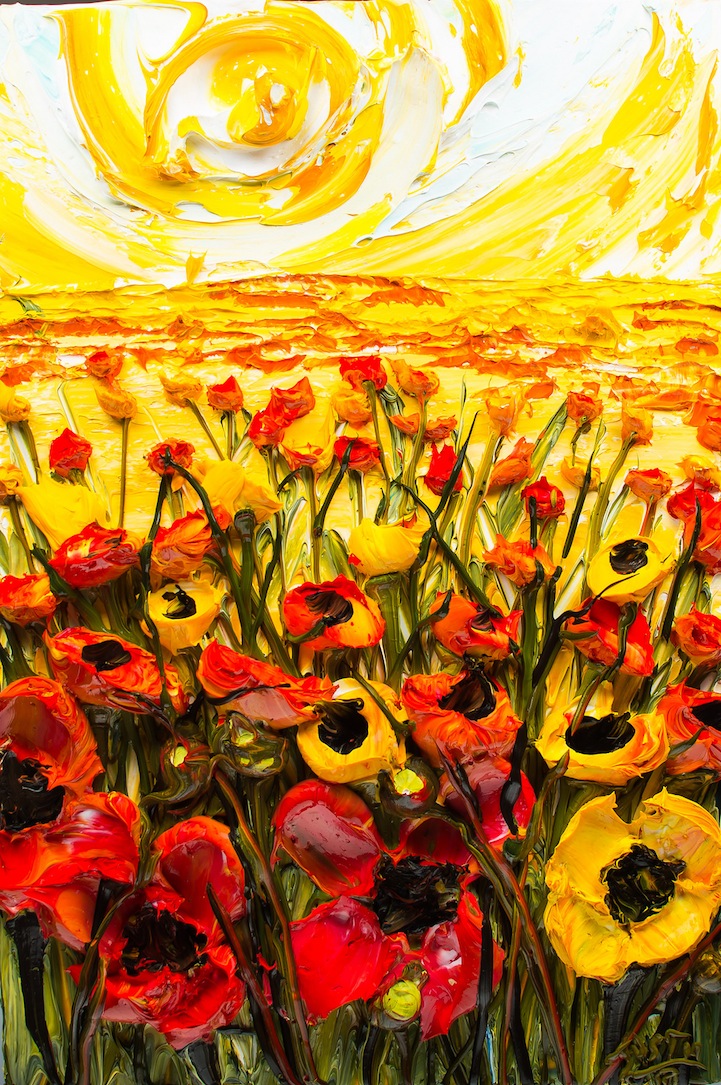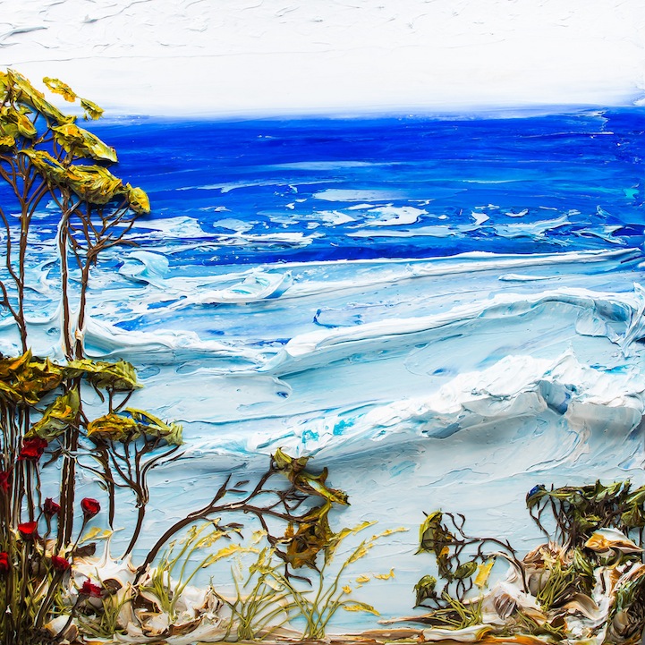 Chef and restauranteur-turned-artist Justin Gaffrey blurs the boundaries between paintings and sculptures with his eye-catching landscapes and floral creations. The Walton County, Florida-based visual artist aptly describes his method of art as “sculpting with paint.” Working primarily with palette knives and a countless assortment of acrylic paints, Gaffrey manages to produce beautifully textured works of art inspired by the natural world around him.