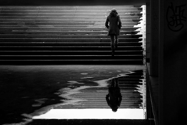 A single, lone, silhouetted figure is seen off in the distance in each shot, appearing miniscule in comparison to her surroundings. In his exploration of modern buildings, Ziehl reveals the beauty of simplicity and symmetry. Viewers quickly forget about the larger scene beyond the edges of the frame as they become transfixed by the intriguing patterns, textures, and reflections, and immersed in the visual narrative.
