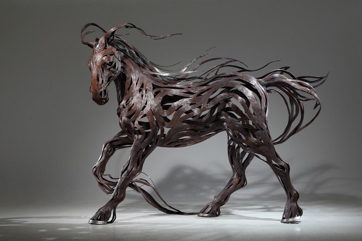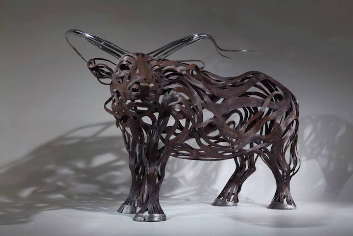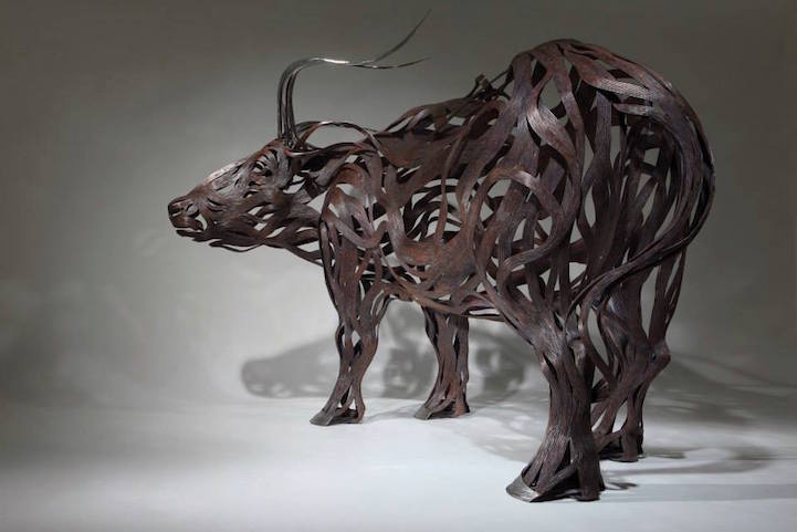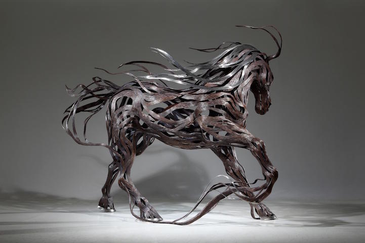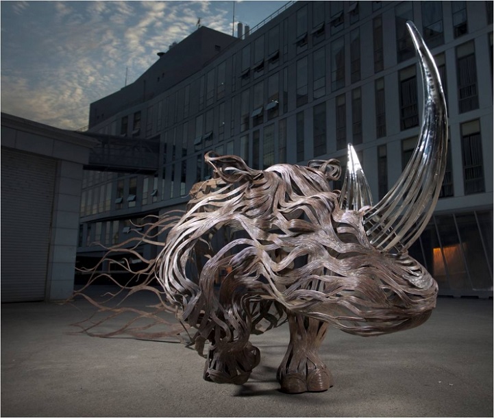 Artist Sung Hoon Kang‘s stunning animal sculptures embody the movement, speed, and chaotic energy of the wind. Though static structures, each of his pieces seem to come alive as metal strips are transformed into muscles and motion that flow in the wind. Kang's talent is apparent within his artwork, releasing raw energy from the flowing materials.