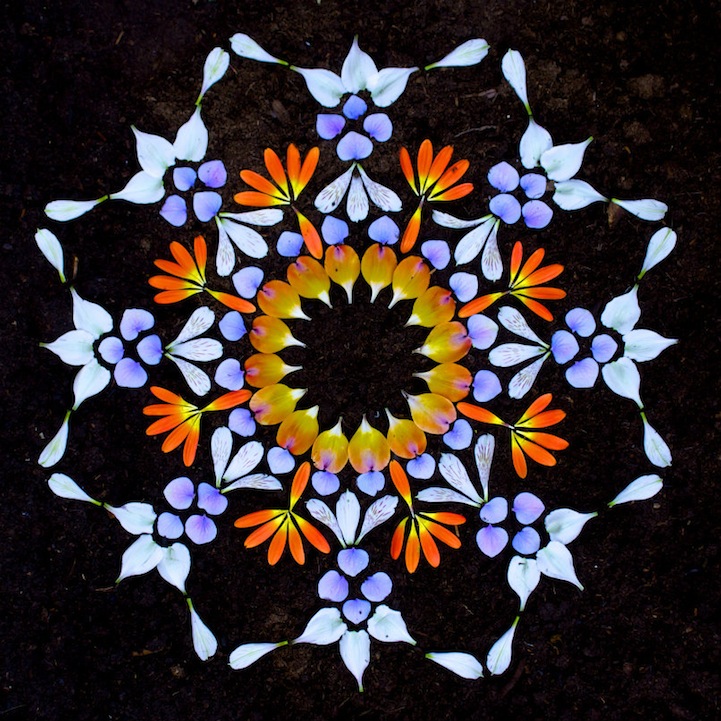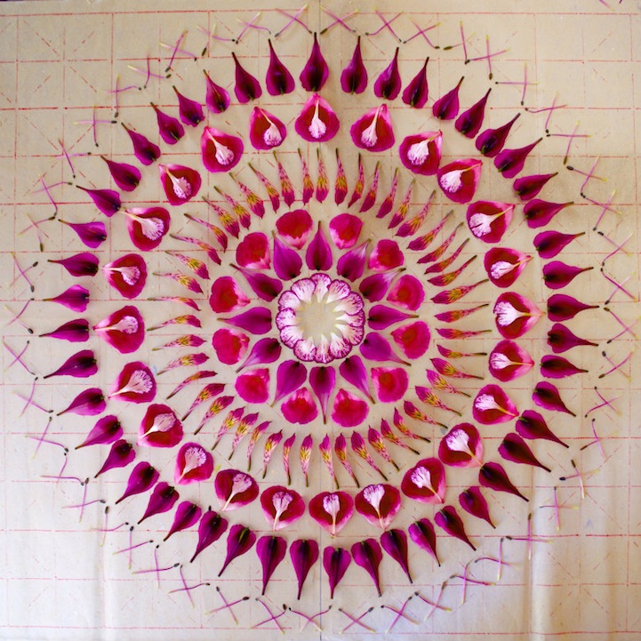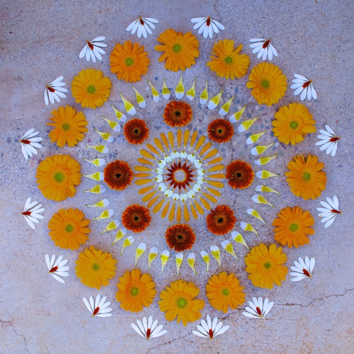 Arizona-based artist Kathy Klein uses a variety of organic materials to produce a series of eye-catching mandalas referred to as Danmalas–a portmanteau of the Vedic Sanskrit words “dan” and “mala” which respectively mean “the giver” and “garland of flowers.” Each piece in her ongoing collection boasts a brilliant sense of geometric symmetry and energetic life.