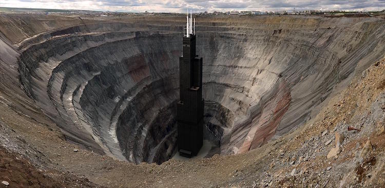 The Mir Mine located in Russia is one of the deepest mines in the world. The official depth is 1,722 feet deep. If the 2nd tallest building in the United States, the Willis or Sears Tower which is 1,729 feet tall was placed in the mine, the tip would only stick out 7 feet past ground level.